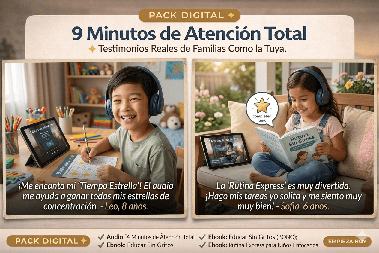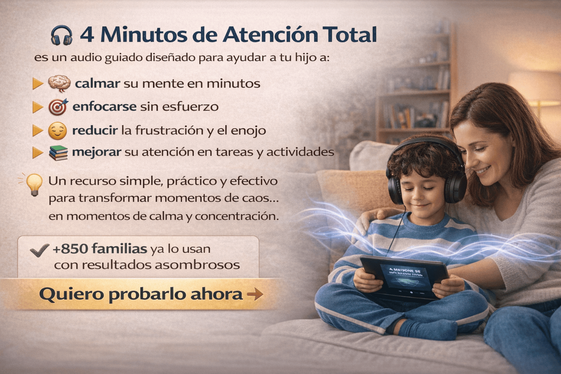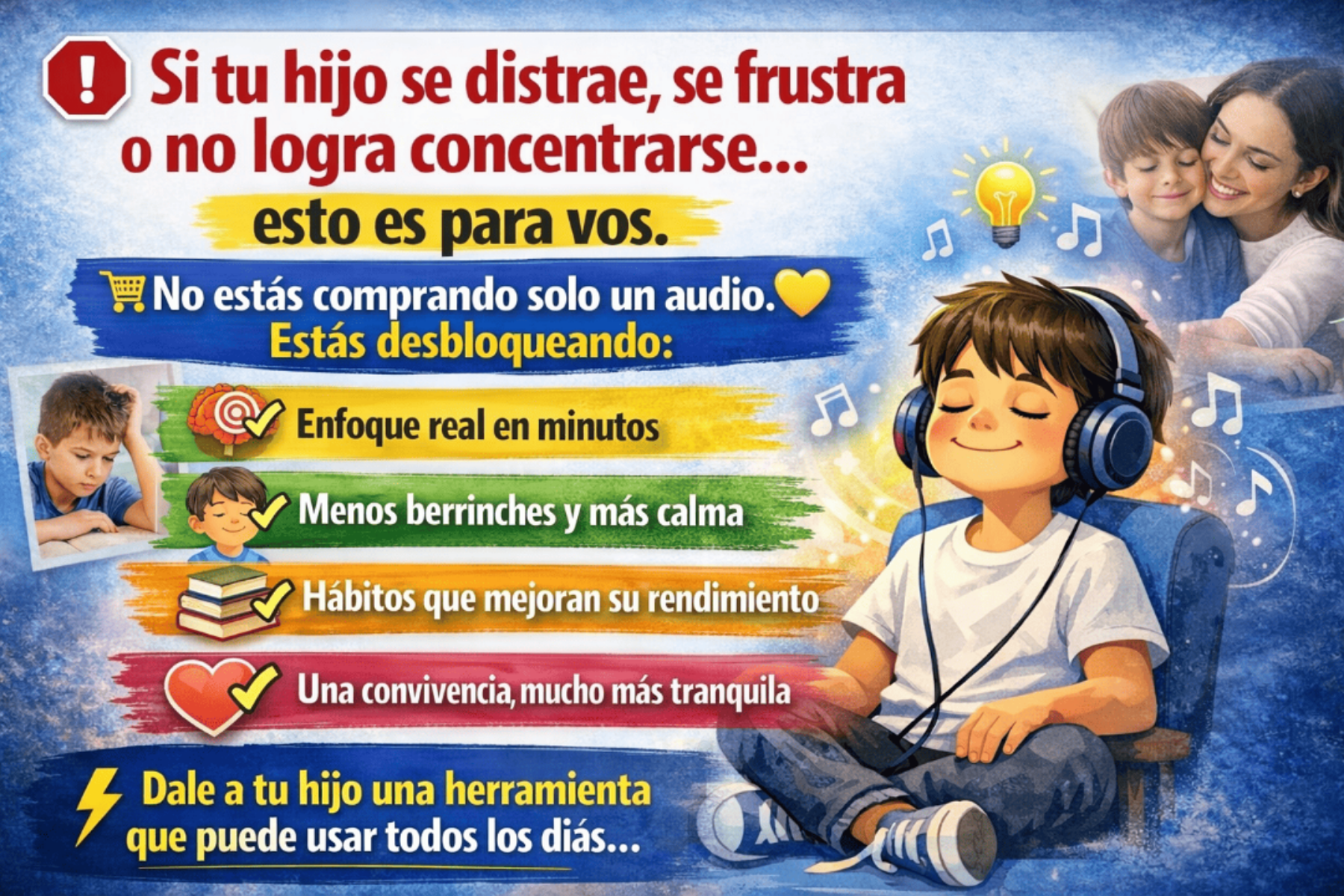 Estás comprando un audio digital de 9 minutos diseñado para ayudar a tu hijo a mejorar su atención, calmarse y enfocarse de forma rápida y natural.